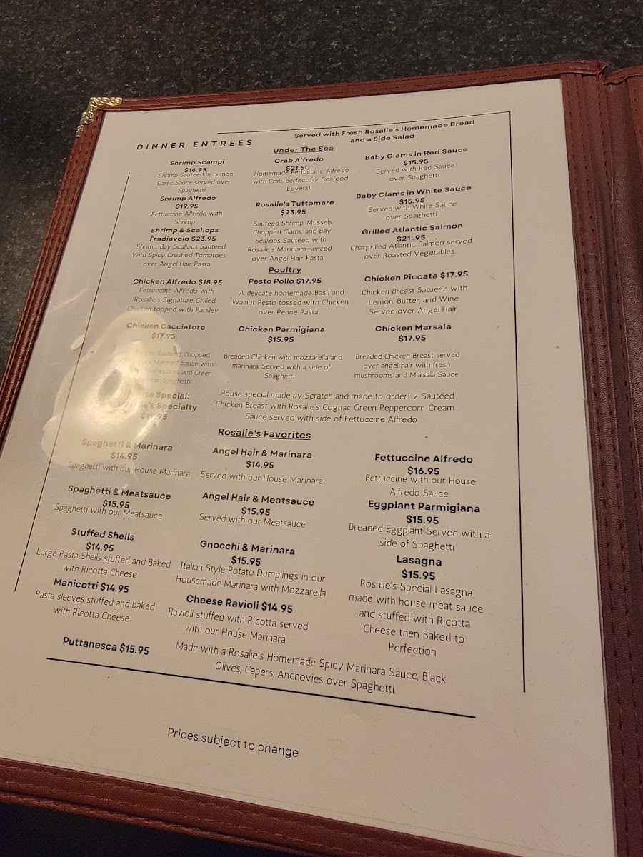 If you're looking for a place to satisfy your cravings with delicious comfort food, Rosalie's Grill Menu is the spot to be. Located at 1901 Scotland Ave, Chambersburg, PA, this cozy gem offers a diverse selection of mouthwatering dishes that cater to all tastes. Whether you're in the mood for a juicy steak, fresh seafood, or a hearty burger, Rosalie's delivers flavorful meals that will have you coming back for more. Their menu features everything from classic appetizers to signature entrees, each prepared with fresh, locally sourced ingredients. The warm, inviting atmosphere adds to the dining experience, making it the perfect place for a casual meal or a special night out with friends and family. Come hungry and enjoy a taste of something truly exceptional.